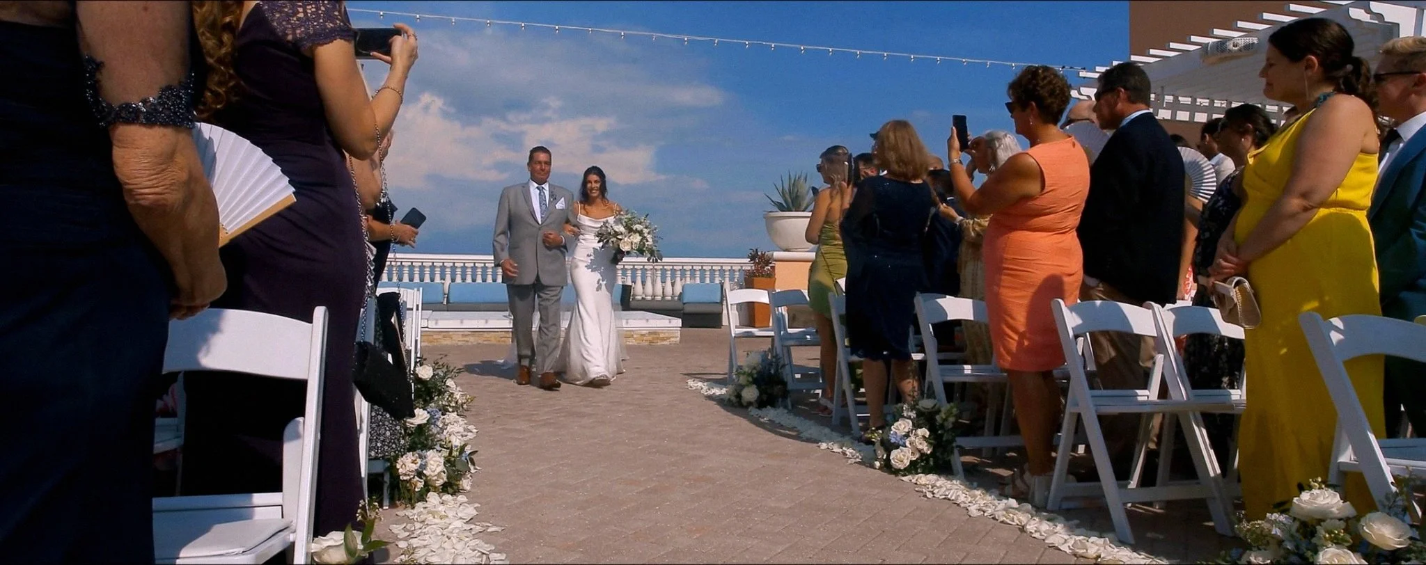 Filming weddings on Clearwater Beach requires experience with coastal light, shifting weather, and fast-moving wedding timelines. With more than 700 weddings filmed worldwide, Hatfield Productions brings years of experience documenting celebrations in dynamic environments like beachfront resorts and waterfront venues.